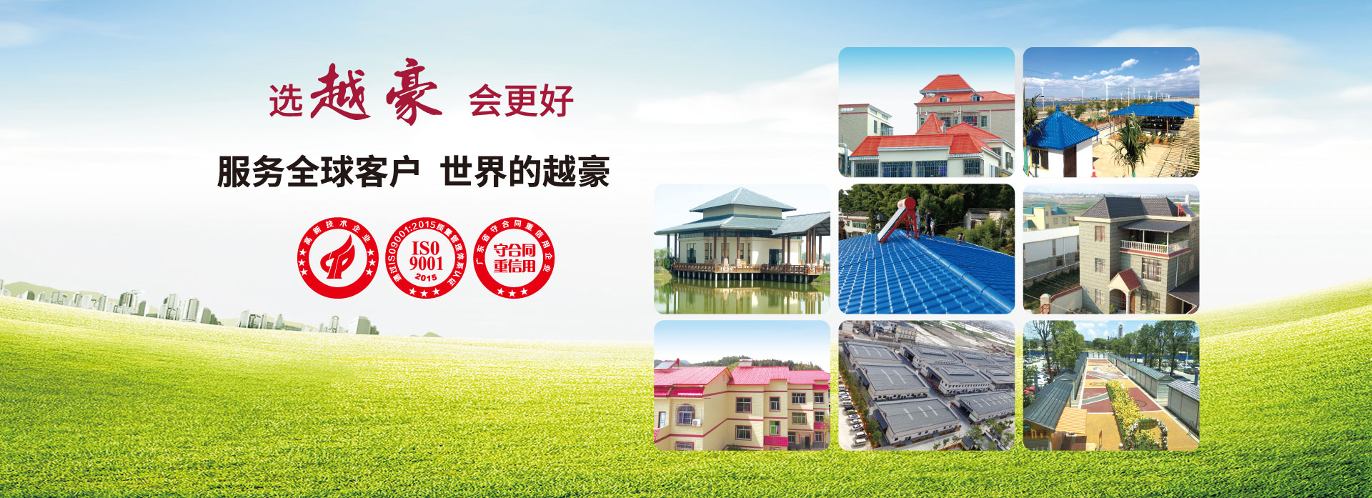 佛山市越豪建材科技有限公司位于建材制造業發達的佛山市,是一家專業研發、生產、銷售ASA合成樹脂瓦、APVC 工程耐候瓦、PVC多層防腐隔熱瓦等系列產品的廠家。